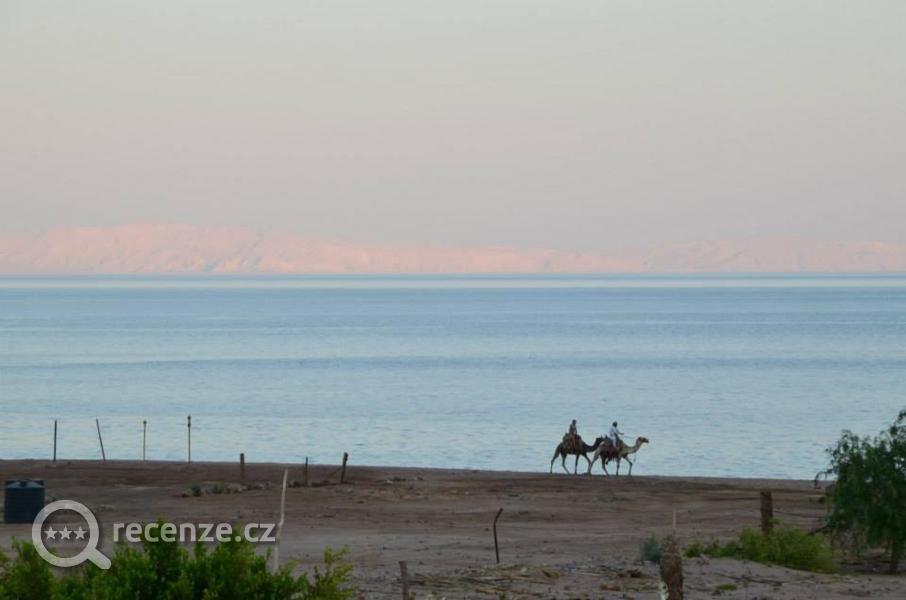Krásné hory, jinak pustina. V době našeho pobytu byly zbourány na levé straně pláže chatrče a market, který nefungoval. Kvůli dceři jsme kupovali výlet poloponorkou, doporučuji koupit v Dahabu u kašny doleva za dřevěným mostem je místní prodejce Palma Safari, cena 25 euro osoba komplet vč. dopravy taxíkem tam a zpět, od naší CK byla cena dvojnásobná. Navíc přístav je opravdu ,,za rohem,,