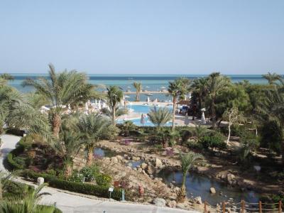 Kvalitní rozlehlý hotelový komplex s jezírky se nachází cca 25 km severně od letiště a 25 km od centra Hurghady přímo u písečné pláže, obklopený uměle vytvořenou lagunou.