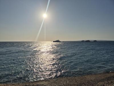 Možnosti vstupu do moře jsou dvě. Buď pozvolné pro neplavce a děti nebo z druhé pláže,kde můžete rovnou do vody nebo přes molo po žebříku či skočit rovnou do vody. Je zde i možnost využití bazénu pro dospělé i děti, menšího bazénku pro děti nebo i aquaparku,kde se vyřádí děti i dospělí