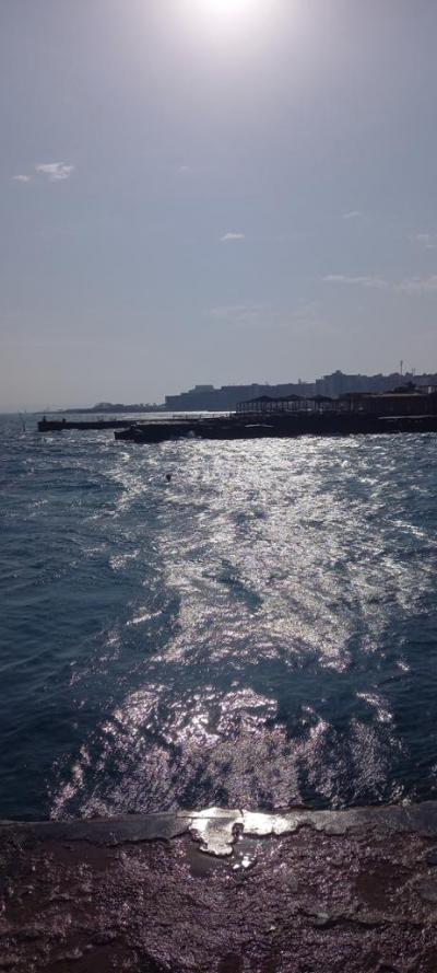 Menší starší hotel rovnou u moře ( malé zátoky), z pokoje přímo na ulici jsem nebyla nadšená, ale nakonec to bylo super, protože se tam pořád něco dělo. Obyčejně zařízený, ale postel veliká a pohodlná, vodou denně doplňovaná lednička, klimatizace fungovala, skromná koupelna se sprchovým koutem, přímo u malinkaté pláže,