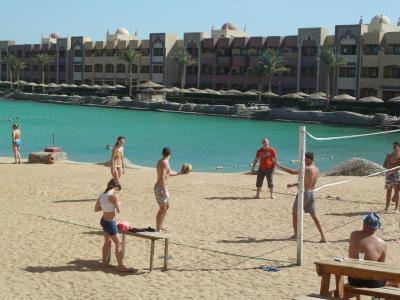 Velmi dobre resena hotelova plaz, cely hotelovy kompex vytvari uzavreny prostor pro vnitrni lagunu. Laguna je sice umela vytvorena ale navazuje na more a po letech uz se tam vytvari take morsky zivot. Na kamenech jsou sasanky, clovek plave s krasnyma rybama rudeho more a navic je voda prijemne tepla. Vyhoda tohohle komplexu je ze i chladnejsich mesicich, kdy byva vic vetrno, tak v ramci arealu je porad prijemne.