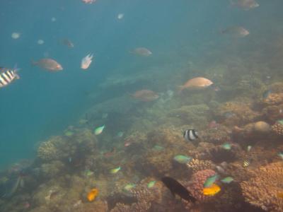 Krásný jemný písek, hned po příchodu vám obsluha donese matrace, všude čisto, pořádek, kousek toalety a sprchy, na pláži je restaurace: hranolky, pizza, hamburgery, zákusky, saláty 12,30 - 16h., pití stále k dispozici. Za bójkami pár menších korálových útesů, spousta ryb, viděli jsme i želvu a rejnoka.