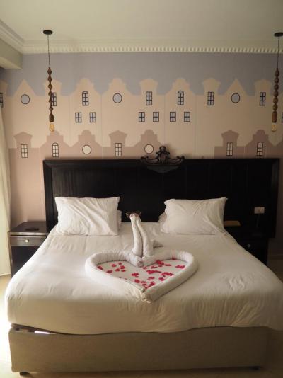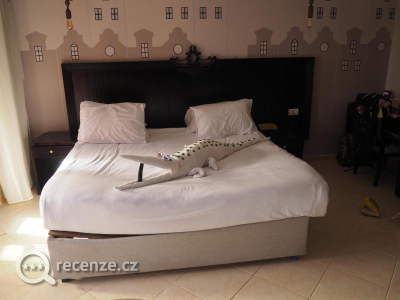 V koupelně otevřená sprcha a tak potopa po každém sprchování. Teplá voda v pohodě, občas velmi slabý tlak. Ručníky denně čisté, za bakšiš z nich byly labutě, srdíčka, krokodýl...