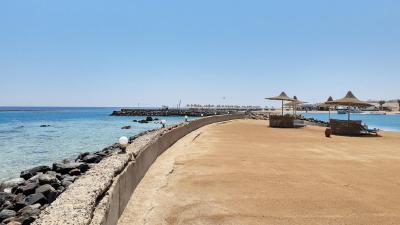 Vlajková loď hotelu. Ač Hurghada není podmořským životem tak známá jako Marsa Alam, zrovna tato část letoviska skýtala skvělé podmínky pro šnorchlování. Kdo není potápění nakloněn, pro toho byly vyhovující dvě lagunové pláže s čistou průzračnou vodou. Pláže jako takové byly udržované a bylo vidět, že se o ni hotel velice pečlivě stará. Slunečníky a lehátka byla často volná. TOP!