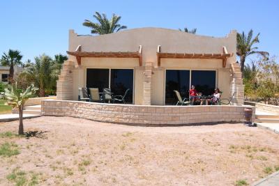 Polovica bungalovov ma vo svojom okoli travu, krasne palmy a pestrofarebne kriky, ale druha polovica pust a sem tam kaktus.