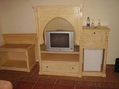 Hotel se skládá z hlavní budovy, kde je umístěn lobby bar, ze kterého je možné vyjít posedět na krásnou terasu s výhledem na celý komplex. Také zde najdete obchůdky a ve spodní části je hotelová jídelna. Pokoje v tomto komplexu se nacházejí v dvoupatrových vilách. My byli ubytováni v 1. bloku pokojů, s výhledem na tenisové kurty. Tyto pokoje jsou hned u hlavní budovy a do restaurace je to opravdu kousek. Vzhled pokojů, ale i celého hotelu, na mě působil velmi orientálně a zcela kouzelně. Bydleli jsem pravděpodobně v rodinném pokoji, i když jsme byli pouze dva. První část pokoje se skládala z místnosti s televizí, trezorem,minibarem a 2 pevnými oddělenými lůžky, pak chodba, kde byly skříně a koupelna a další místnost byla ložnice s manželským lůžkem, všechny místnosti jsou odděleny dveřmi. Klimatizace fungovala, jen malinko hlučnější, ale pokoj byl vemi pěkný.