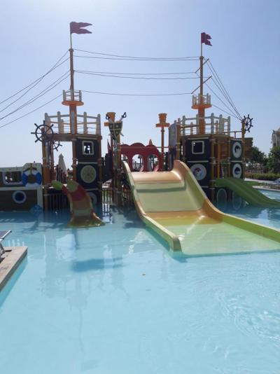 Vybavení super. Několik bazénů, restaurcí a tobogánů pro malé děti. Lze využívat i aqua park v nedalekém sesterském hotelu a to je teda asi největší plus. Personál snaživý.