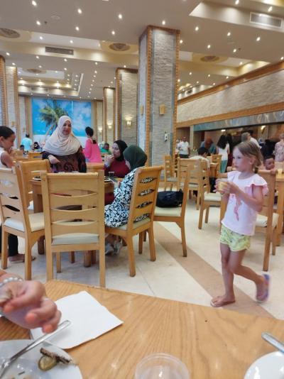 Jídlo dostačující, každý si najde co mu chutná hodně se koření a kari, ale mají i normální rýži a šťouchaný brambor a zeleninový vývar, hodně zákusků a dortů. Velká výhoda oddělené jídelny na snídani a oběd na večeře je jídelna v prvním patře převážně pro Evropany ve spodní části pro araby, tam moc nechodit jsou to prasata. Dá se koupit za 15 euro na osobu luxusní večeře, stojí to za to.