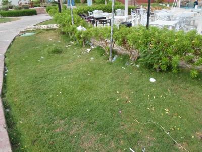 Resort je neudržovaný,všude strašná špína a nepořádek,plastové kelímky a lahve,venkovní osvětlení s čouhajícími dráty, toalety znečištěné exkrementy, na recepci všude po zemi zbytky cigaret a rozlitého pití, úklid žádný