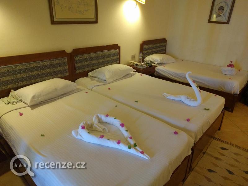 Hned po příjezdu na recepci jsme jim zaplatili tzv. Bakšiš (všimné, úplatek) 5 dolarů a začali s námi jednat úplně jinak než s ostatníma. Dostali jsme nádherný pokoj s výhledem na moře. pokoj jsme měli prostorný, nádherná koupelna a takový velký balkon jsem ještě v hotelu neviděla. Hned ráno po příjezdu Vás asi vzbudí uklízeč představí se atd. Každý den uklidil a ptal se nás jestli je to ok. Pokoj měl to co psali: ledničku,trezor,klimatizaci atd. Taková malá rada když na recepci dáte ten bakšiš tak chtějte pokoj v 1 patře. Jsou nejhezčí.