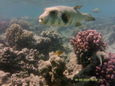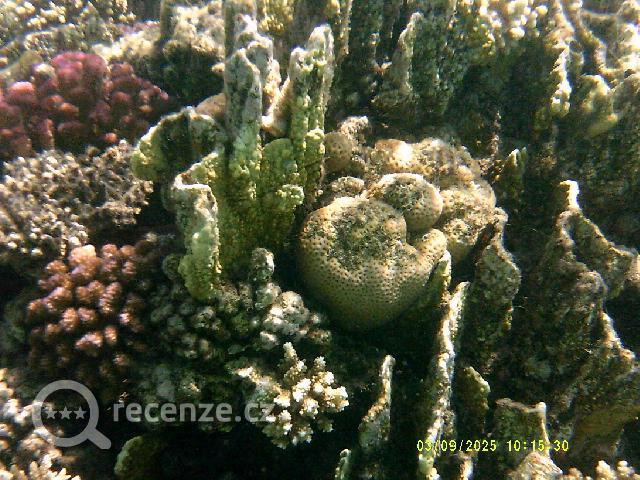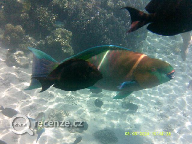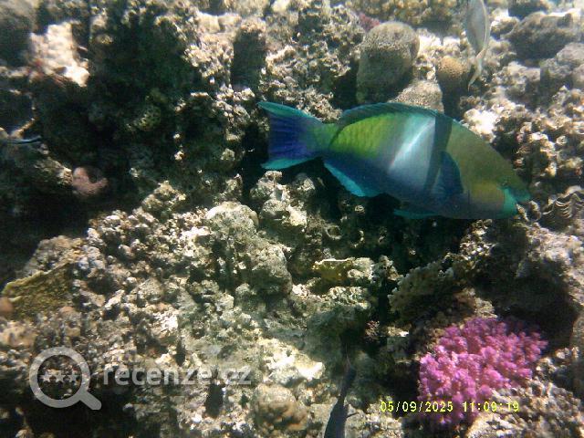 Krásná pláž,dostatek lehátek.Vstávali jsme obsadit si první řadu,spojili jsme to s pozorováním východu slunce.(Na rozdíl od listopadu 2024 jsme za ním šli do vedlejšího hotelu Makadi Spa)Ale i ti,kteří si rádi pospí si lehátka našli v dalších řadách.Moře čisté,množství barevných malých i velkých ryb.Korály pěkné,ale na Marsa Alam to zkrátka nemá ani celkově mořský svět.A i tady se najdou pi....i,kteří si korálů neváží a vyloženě po nich dupou.