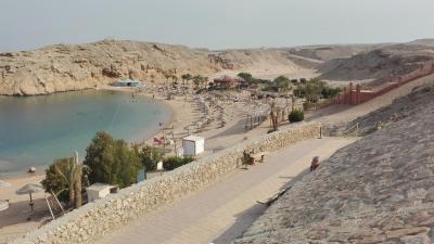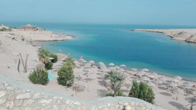 Nááádherná zátoka, na Egypt písečná pláž vhodná pro děti,po 20metrech jde do hloubky,po stranách zátoky korály a množství rybek,perutýni,rejnoci.sépie.Všichni se koupali bez bot až na potápění ke korálům.Téměř žádný odliv ne jako jinde,že moře v 10h uteče o 100m pryč a vy se brodíte přes korály,aby jste si zaplavali.Půjčovna šlapadel.surfů a čtyřkolek, já doporučuji celoobličejovou masku (Decatlon 799kč),Po pláži roznáší fresch džusy zmrzlinové poháry -2USD,Animace na pláži, petang,strečink,aquazumba,volejbal,
