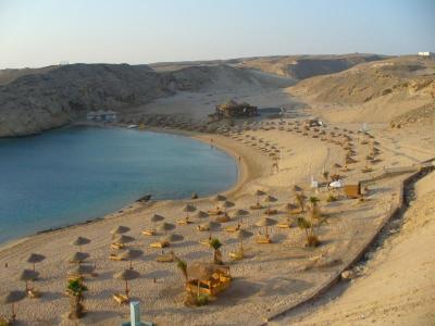 Pláž je ten největší důvod, proč jet sem. Vhodná jak pro děti, tak na šnorchlování, lemována korálovými útesy, vůbec nemusíte nikam na výlet. Je situována v zálivu Sharm el Arab, což je obrovská výhoda proti otevřenému moři. To se nedá popsat, to se musí vidět. :-). Na pláž buď po schodech, nebo jezdí malý pink busík, pro ty kdo mají se schodami problém.