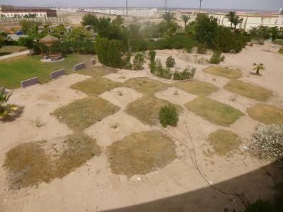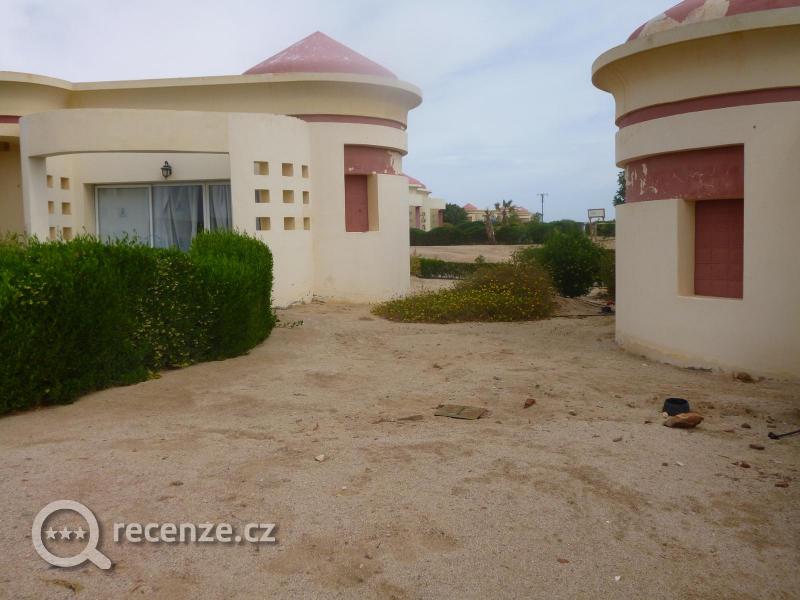 Spálené trávníky, zeleně velmi málo. Všude vidíte rozbité a neobydlené bungalovy. Bazény špinavé s poničenými foliemi.