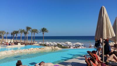 Čistá veľká pláž, vstup do mora je cez korali, takže odporúčam obuv do vody. Lehátka, matrace, slnečníky a osušky sú k dispozícii ako aj pri bazénoch tak aj na pláži.