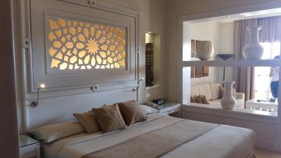 hotel ponúka izby:Junior Suite -krásne nové priestranné izby, všetko je nové a čisté, izby majú veľké balkóny, na izbe štandartne mini bar, trezor ktorý dopĺňajú každý deň ale iba nealko, fén, klíma na izbe.