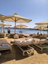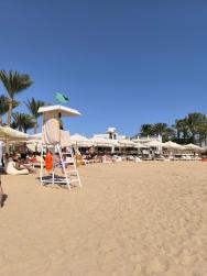 Hotel má piesočnatú pláž s pozvoľným vstupom, spoločnú so susedným hotelom Sunrise Royal Makadi Aqua Resort.