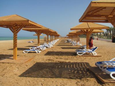 Pláž krásná, dlouhá, s plážovou promenádou. Bar a sprchy. Ovšem špatný, špatný přístup do moře. Moře mělké a cca 800 metru kameny a staré korály. Nyní je však v hotelu molo, takže bezproblémový přístup.