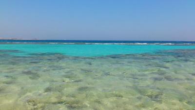 Největší slabina hotelu. Chybí molo (vzhledem k vzdálenosti a tomu, že jde o Egypt, pochybuji, že ho postaví), takže se musíte projít cca 150-200m přes ploché korály (všudé jsou hvězdicovité organismy, tak to je takové trošku nechutné) než dosáhnete nádherné písčité laguny (kde je ovšem úžasně teplá, průzračná voda). Bez bot do vody nemá smysl do moře chodit (na pláži půjčují erární zdarma). Korály, rybičky jinak OK.