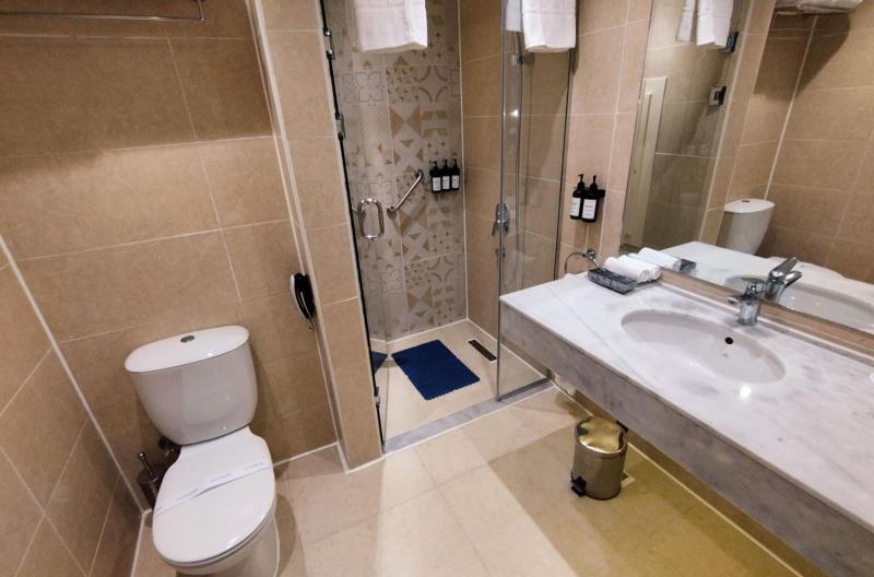 Pokoje jsou slušné. Nenajdete tady pokoje pro handicapované, hotel na to není stavěný. Na fotkách jsou pokoje premium s výhledem na moře. Pokoje Standard měli v době prohlídky všechny obsazené, ale mají obyčejnější vybavení a starší nábytek (hnědý).
