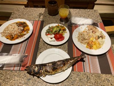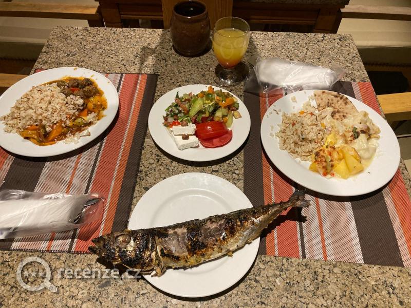 Strava byla chutná. Na výběr byl zeleninový a salátový pult, různé druhy pečiva a opravdu velký výběr sladkých zákusků. K snídani omeleta nebo palačinky, ovoce. K obědu a večeři vždy kuřecí, hovězí i ryba. Každý večer i něco na grillu. Každý si vybere to svoje. Všechna jídla vám na talíř vydává obsluha za pultem.