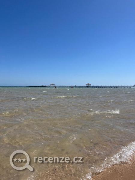 Pláž i moře krásné, ale je tu velký odliv. Přes dopoledne je moře sice až u břehu ale mělké. Musíte opravdu kus ujít a stejně je voda do pasu. Kolem 14:30 už je velký odliv a moře prakticky není. Ale je po celý den možnost z mola po žebříku rovnou do hloubky. Nám to vyhovovalo protože máme malou dceru, takže pro děti fakt ideální.