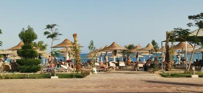 Pláž písečná, nejsou potřeba boty do vody,lehátka nová a plážové osušky taky, číšníci z plážového baru roznášejí nápoje až na lehátka. Můžete využít nabídku vodních sportů,jízdu na banánu, padák , voda je čistá a odliv na koupání vůbec nevadí.Na šnorchl tento hotel není v moři nic není.