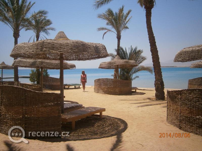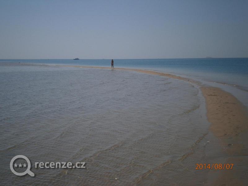 Pláž je slušně dlouhá...jen tři řady slunečníků mezi palmami pěkně daleko od sebe. V krajní části je navíc tzv. klidná zóna kde i v poledne najdete místa v první řadě a kolem vás 20 metrů nikdo ležet nebude. Levá část pláže má vstup do moře po schůdkách, pravá část má přístup klasický. Vstup je pozvolný (cca 50m hloubka). Odliv nemá vliv. Osušky vydávají na požádání a u bazénu je navečer zase posbírají. Všude je kousek, hotel má tvar písmene U. Dno písčité, téměř bez kamenů a plavou v něm jen nezajímavé rybičky /bez korálu). Nejzajímavější je výběžek mělčiny v levé části....zde je možné jít cca 300m směrem na širé moře a vodu budete mít po kotníky - kolem vás pak strmě hloubka a různě zbarvené moře.