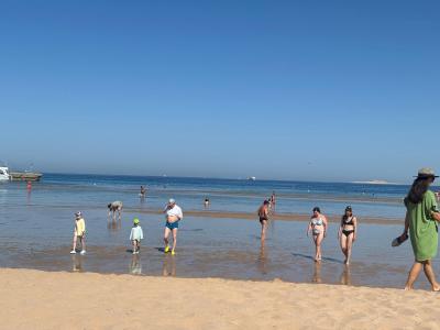 Teď jsme momentálně v hotelu Seven Seas Jolie Bay (ex. Aqua Mondo Abu Soma), hotel je pěkný, čistý, obsluha také milá ale co se týče moře tak rozhodně nedoporučuji, pozvolný vstup k moři je ale jenom dopoledne a nejvíc 1.5 hluboké ale odpoledne celá katastrofa. Voda je po kotníky ale když chcete aspoň třísku namočit se ta musíte aspoň 500 metru projít přes moře /viz. foto/