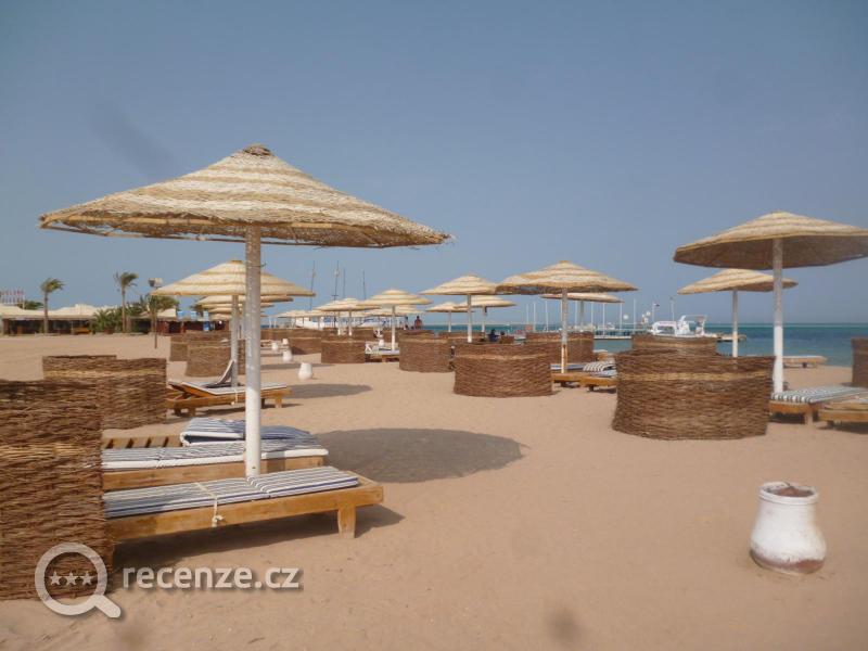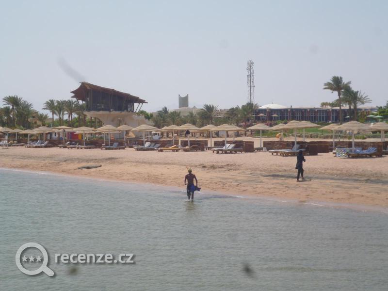 Moře překrásné, za ním jsme tam také jeli. Opravdu úžasné, průhledné, čisté a měl 33 stupňů. Jen vlny nebyly, ale to vůbec nevadilo. Pláž čistá, uklizená u bazénů také čisto. Egypťané se málo koupali, takže v moři prázdno, vždy volné lehátka i u moře i bazénu. Dlouhé a široké písčité pláže, část na koupání s pozvolným vstupem a část s koráli na potápění.