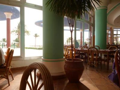 V komplexu byla velká jídelna, spíše přizpůsobená stravování rodinám s dětmi, bylo tam totiž hodně Egyptských rodin s dětmi a po nich zůstalo většinou hodně nepořádku, takže stolování spíše obyčejné, žádný luxus. Ale jídlo a výběr jídla moc dobré, spíše hodně zeleninových jídel, různé cuketové variace, velké množství výborných zákusků, ale maso a ryby na příděl. Bylo málo ovoce, žádné mořské plody, nejvíce byl pangas, což jsme byli překvapeni. Ale i tak jsme se každý den dokázali perfektně najíst. Vodu jste si mohli nalít kolik jste chtěli, ostatní pití jste si museli dojít, rozlévali do malých kelímků. Na pláži jste si nalévali sami. Na pláži mohlo být v nabídce ovoce a zmrzlina i kdyby to bylo za peníze.