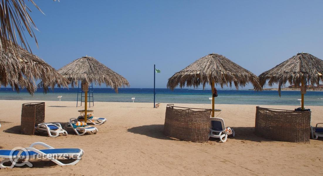 Na pláži byly kdykoliv volné lehátka se slunečníkem.