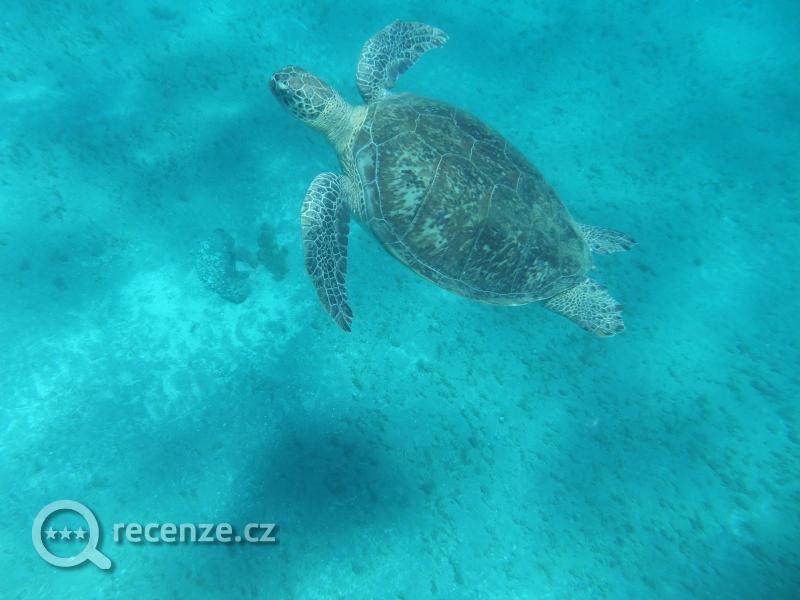 Na pláž cca 5min.K vůli korálovému podloží je vstup do moře jen z určeného místa je tam písek.Tam se ale sejde mnohdy i 20-25 lidí najednou a to nebyla sezona.Hodně potápěčů.Docela tam bylo přeplněno.Jinak pro šnorchlování krásné místo.Želvy jsme viděli každý den velké i menší.Rybek hojně ale neviděli jsme žádné větší ryby jen(cca do 80cm)