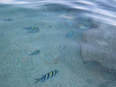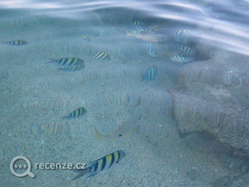 Pekná, písečná pláž, v moři spusta rybiček. Po setmění cupitají po pláži krabi.