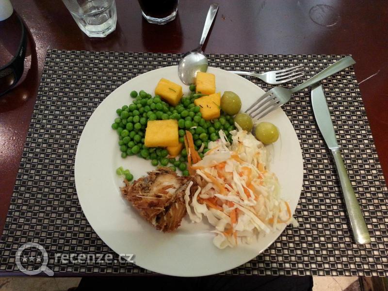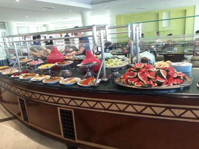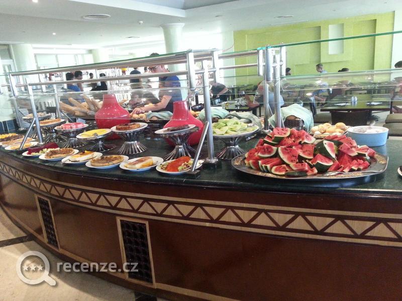 Byli jsme velmi zklamání. Asi bych jen opakovala předchozí hodnocení s kterým se mohu ztotožnit. Hygiena o ničem. Talíře často špinavé, sklenice upatlané. Nutno přebírat. Fronty. Doporučuji přibalit sebou menší láhve na vodu. Často jsme si do nich čepovali vodu perlivku, vypadala líp, než voda v barelech, kde si každý vodu musel doplňovat. Jinde možnost není, balenou vám nikdo nedá. Možnost zakoupení na baru za 2 dolary. Nedoporučuji barely podrobit prohlídce, protože jsme byli dost v šoku z té špíny a na náladě vám to fakt nepřidá. Já po 2 dnech pobytu v noci trpěla úporným zvracením a průjmem, okamžitě nasazen Ercefuryl, který mě zachránil. Dětem jsem posléze též musela tento lék nasadit, ale neměli to tak úporné jak já. Naštěstí. Manžel to chytil až při odjezdu a ještě ho to nepřešlo. V době našeho pobytu jsme nebyli jediní. Bohužel! Po 4 v Africe a tato zkušenost! Proto doporučuji tento lék přibalit, na těžký žaludek nám pomáhalo i černé uhlí. V místě hotelu je i lékárna, ale nepřišli jsme na to jak funguje, též je tam hotelový lékař, který funguje hodinu dopoledně a hodinu večer, má to tam označené. Delegát vše vysvětlí. Na pláži mají nedopečené hnusné hranolky, špagety a pizzu. Housky se salámem a sýrem na svačinu, sladké pečivo. žluté melouny. Na pláži jsme vykryli oběd asi 3x ale pak už se vám to vážně přejí ale v hlavní restauraci to není o moc lepší. Po urgencích otevřeli druhou půlku restaurace a tak se fronty zmenšili. Nejlépe jsme se najedli na snídani, sice i na ten opečený toust čekáte deset minut /fakt to peče bídně/ ale snídaně byla jediná, kdy se člověk kvalitně najedl. Obědy rýže, brambory ve šlupce apod. Stejná omáčka celý týden na způsob našeho UHA. Opravdu jsme si nepochutnali.