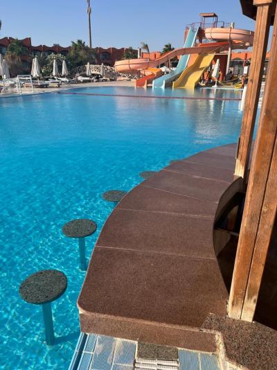 Wi-Fi všude i bazen a plaz, recepce, gym, klinika, tobogany, piratska loď, bar u bazenu