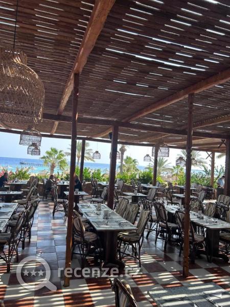 Restaurace se nachází u moře hned, takže nádherný výhled u jídla. Jelikož je to 3* hotel, tak výběr jídel není tak rozsáhlý jak je člověk zvyklý z obrovských resortů, ale na druhou stranu chutnější jídlo jsem v Egyptě nejedla. Každý den je ryba, kuřecí, hovězí, pizza, těstoviny a jejich typické jídlo, vždy vynikající.