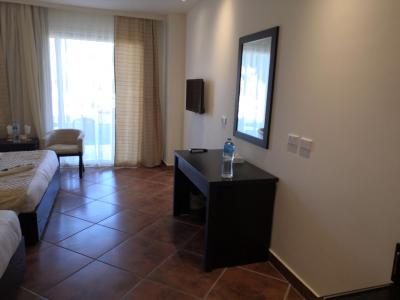 Nákupní možnosti v hotelu. Hotel postupně prochází rekonstrukcí. Všechny pokoje mají boční výhled na moře. Na standardním pokoji trezor zdarma stejně jako set na přípravu čaje a kávy, voda na pokoji zdarma. Pokoje mají malou koupelnu většinou se sprchou. Rodinné pokoje jsou blízko aquaparku.