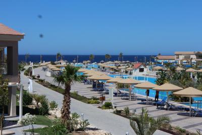 Vstup z mola, pláž OK - jinak množství bazénů a velkorysý prostor, vše se pak zdá nepřeplněné a hlavně klidné.