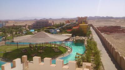Nejdřív nás vrazili do zchátralého pokoje na konci hotelu. Díky bohu za delegátku, která zařídila přesun do mnohem lepšího pokoje v centru aquaparku. Pokoj čistý, upravený a zdaleka ne tak zanedbaný jako ten první. Koupelna s wc a sprchou pěkná, pokoj prostorný, dobře klimatizovaný a velký balkon s výhledem na celý aquapark.