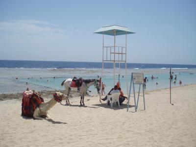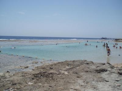 Pláž u moře moc pro děti není. Jednak písek je rozžhavený, že se na něm ani stát nedá a pak ke koupání je určena pouze malá obdélníková laguna vybagrovaná do korálového útesu. Pro děti je tam hrozná nuda a naše tam vydrželi půl dne. Na opalování je to zase ideální. Dá se ležet ve vodě jen se smažit. Lehátka, slunečníky a větrné zábrany v celkem dobrém stavu.