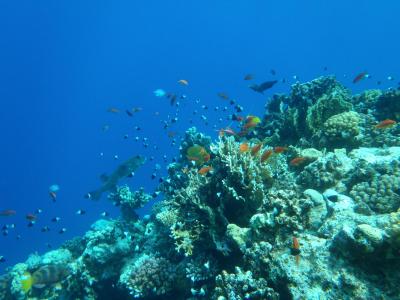 luxusní moře, krásné korály hodně ryb