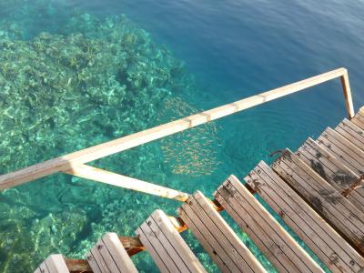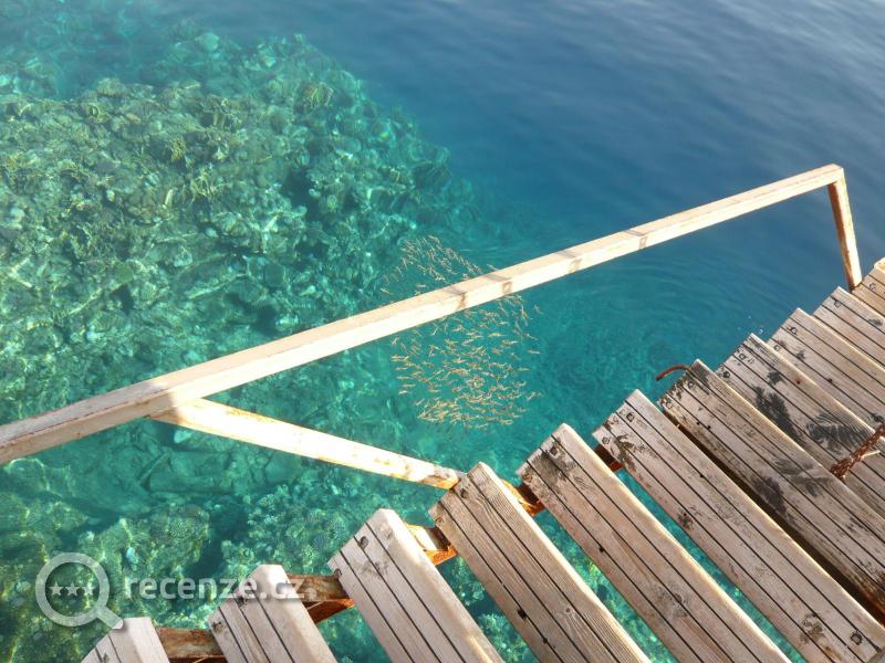 Je vhodnější spíše pro šnorchlaře a potapěče. Je zde přímo potapěčské centrum pořádající levnější a lepší výlety než cestovka - je na ně spolech a nebude Vás na výletní lodi celý autobus, ale např. 15 lidí paráda. Pro vstup do moře je možné využít molo sousedního hotelu. Proplouvají zde želvy i delfíni. Spousta rybiček a korálů - krásné akvárium....viděli jsme zde i menší mantu.