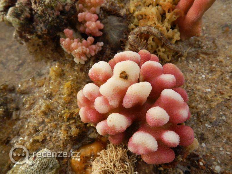 Pláž s kamínky. Dále od hotelu sem tam pet lahev. Moře nádhera. Při odlivu se daly nalézt malé lagunky, kde se občas zapomněla nějaká rybka. Takto jsme viděli 2 druhy perutýna. Jinak Korálový útes bez chyby. Přebohaté množství ryb. Dalo se šnorchlovat i 3 hodiny a stále bylo na co koukat. Určitě nezapomeňte s sebou foťák do vody!!