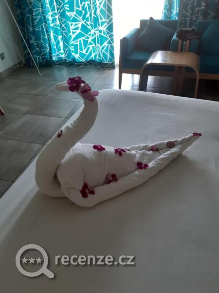 Dobré bylo, že pokoj nám byl předán už v 9 ráno. Bylo vidět ale,že pokoje uklízí chlapi a ne ženy, bylo to vidět i všude jinde. Ale hlavně co mně vadilo jak celý den někdo za vámi chodí a nutí vám drahé jednodenní zájezdy,masáže atd.,toto se dělo každý den třeba i desetkrát,člověk jim řekne hezky že nemáme zájem a oni pořád vás nutí. Jídlo bylo dobré, co ale bylo hrozný tak alkoholické nápoje, všechno bylo egyptské, opravdu se to nedalo pít,ani když si člověk dal rum s colou, tak jsem to musela vylít do keře, ani víno se nedalo pít, takže celou dovolenou jen limonády a pivo,to se celkem dalo. Koupat v moři se nedalo,protože pořád byla červená vlajka, jen někdy odpoledne až kolem 15 hodiny byla žlutá,tak to se dalo vykoupat,ale za to zaměstnanci nemůžou, to prostě tak je. Takže jestli se těšíte jak budete celou dovolenou se potápět tak se netěšte, protože takhle je to tam prý pořád.