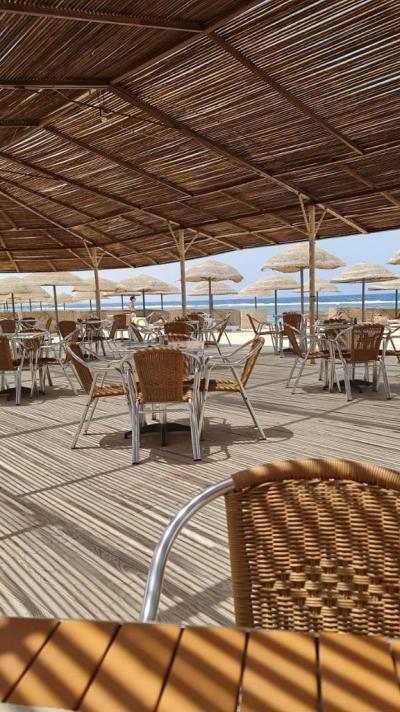 Pláž vzdálena jenom kousek od ubytování, prostorná, čistá, písečná, voda v moři příjemná, vstup do moře po schůdcích přes molo, plavání mezi rybkami, anebo možnost plavání v menších lagunách, hodně prázdných a funkčních lehátek pod dostatečně prostornými slunečníky, soukromí při pobytu na pláži i v moři. Možnost svézt se na velbloudovi nebo na koni přímo na pláži, obsluhující hoši jsou komunikativní a ochotní. Diskžokej pouštěl na pláži bezva taneční hudbu, která nádherně dokreslovala všude přítomnou pohodu, bylo možné si požádat o cokoliv.