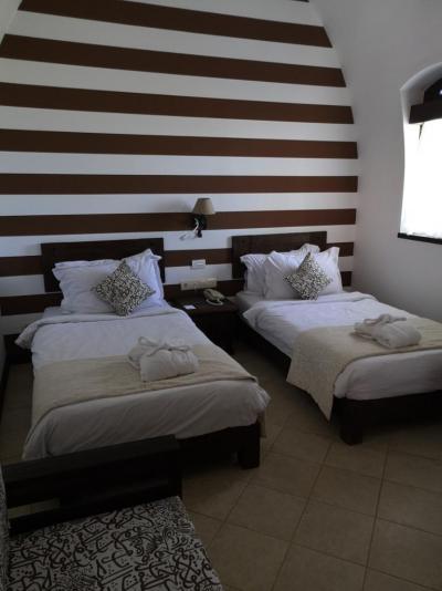 Některé pokoje zatím nejsou renovované, ale postupem se rekonstruuje celý hotel. Pokoje jsou dost tmavé a i paradoxně po rekonstrukci ještě tmavší, ale jinak se mi líbily. Po rekonstrukci jsou pokoje s pruhy na zdech. Před rekonstrukcí pokoje s zelenomodrým nábytkem jsou esteticky hezčí.