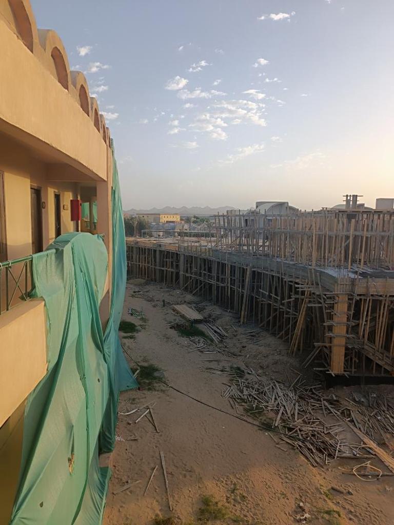Od rána hluk a prach. Neřešili jsme to výměnou, jelikož jsme hned ráno utekli na pláž.