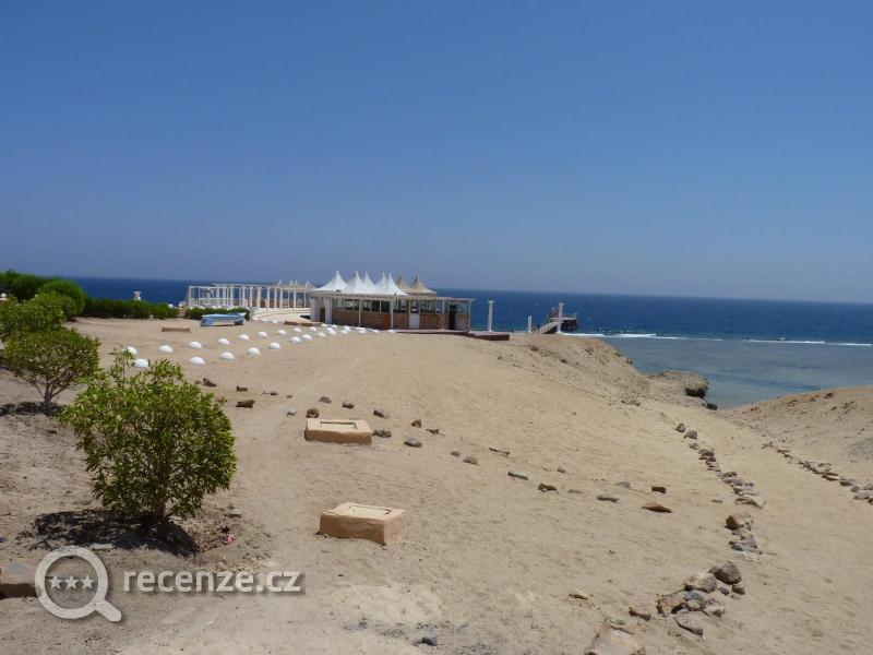 Pláže je písčitá, není daleko od hotelu, dá se k ní dojít pěšky, ale zdarma často jezdí otevřený autobus Taf Taf, na který se čekalo před recepcí. Vozí zdarma, nekolikrát za den. Pláž je opravdu čistá, žádné odpadky a bordel, volně přístupná, žádné omezení, dá se procházet do daleka jako v Tunisu. Hloubka tam není, tak do pasu při přílivu, jinak potápění z mola. My byli spokojeni. Potápění jsme si vážně užili, hezký podmořský život. Navíc zdarma jezdí další autobus na vyhlášenou pláž Abu Dabbab / nutno den předem nahlásit na recepci/ a tato pláže je opravdu přenádherná, vlny, čistota, písek, žádná tráva., pozvolná hloubka. Potápěli jsme se s želvami. Nádhera. Slunečníky a lehátka zdarma, dostatek! Na plážích k dispozici sprchy, wc. U pláže spousta obchůdků, podobných jak u hotelu se suvenýry. Na první pláži zdarma pitný režim jak v hotelu, stejná možnost čepování do čistých kelímků. Na pláž Abu Dabbab nutno si vzít pití sebou, to jsme řešili, že jsme si načepovali do prázdných láhví, co jsme dostávali na vodu na pokoj sycené vychlazené nápoje. Bez problémů, nikdo neřeší, že nečepujete do kelímků ale do láhve. Vodní sporty na pláži nenabízeli.