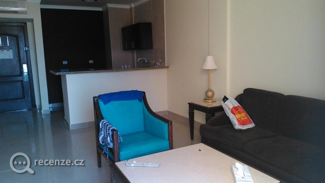 Po příjezdu do hotelu nás hned ubytovali,dostali jsme 2 pokoje se společnou obývací místností-super.Byly jsme 2 páry,každý jsme měli svou ložnici s koupelnou a společným obývacím pokojem a terasou.Pokoje čisté,denně uklizené.Byla jsem v Egyptě po čtvrté a opět spokojená